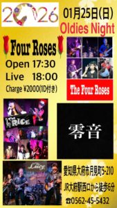 OPEN 17:30/START 18:00 2,000円(税込)(1ドリンク付) ※ライブ中は店内禁煙となります。 🎙The Four Roses 🎙零音 (初) 🎙& […]