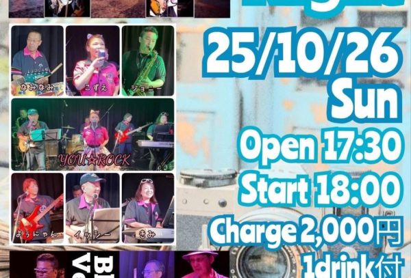 OPEN 17:30/START 18:00 2,000円(税込)(1ドリンク付) ※ライブ中は店内禁煙となります。 🎙Black Velvet 🎙You★Rock 🎙Th […]